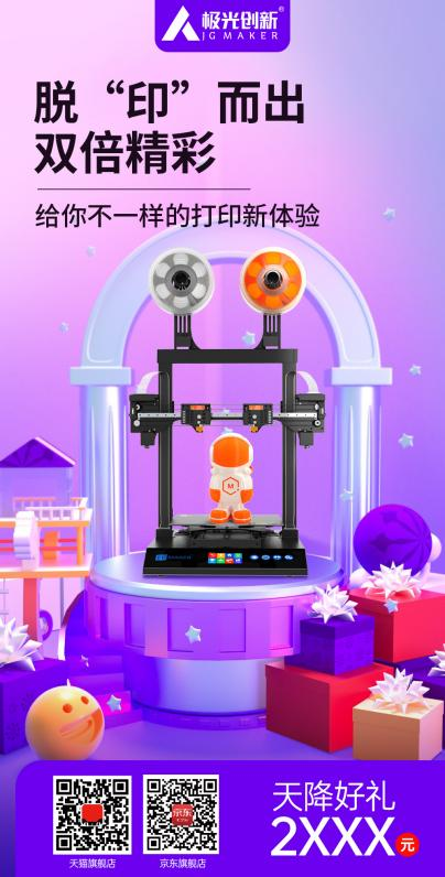 當然,除了以上提到的機型,你還可以在極光創(chuàng)新天貓或京東旗艦店選購其它類型的3D打印機相關(guān)產(chǎn)品。時值雙十一購物節(jié)到來之際,極光創(chuàng)新旗下多款爆款產(chǎn)品折扣力度驚人,購買同時還有多種好禮相送,對于近期有購機計劃的朋友千萬不要錯過此次的雙十一購物狂歡節(jié)。
