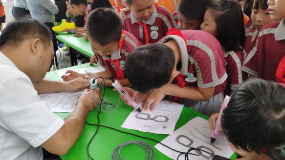 開幕式結(jié)束后,少先隊(duì)員們奔跑到各展位進(jìn)行學(xué)習(xí),極光爾沃展位人氣十足,少先隊(duì)員們對(duì)3D打印的模型很感興趣,不停的咨詢模型的打印時(shí)間和怎么打印出來,極光爾沃聽到這樣的問題非常開心,因?yàn)樯傧汝?duì)員們對(duì)3D打印十分感興趣,想從中了解更多3D打印知識(shí),我們的李工組織分發(fā)耗材,為下午3D打印筆的體驗(yàn)做好了準(zhǔn)備。