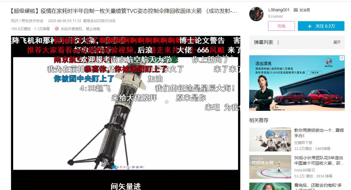 在網上爆火的“后浪”,南京航空航天大學航天學院航空航天工程專業“00后”學生借助3D打印自制火箭,10個月時間完成自主設計到流體仿真、制造、測試、控制,并最終發射和回收的全過程。未來設想利用可回收火箭送快遞。