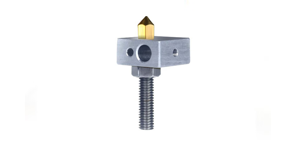 噴嘴是3D打印設備中十分重要的零部件之一,噴嘴規格參數的選取關系到模具成品的質量,當下市場上較為普遍的噴嘴類型結構,是噴嘴與加熱塊螺紋連接的內螺紋噴嘴,內部有大六角,小六角兩種,噴嘴口的形狀分為短厚噴嘴口,長尖噴嘴口。
