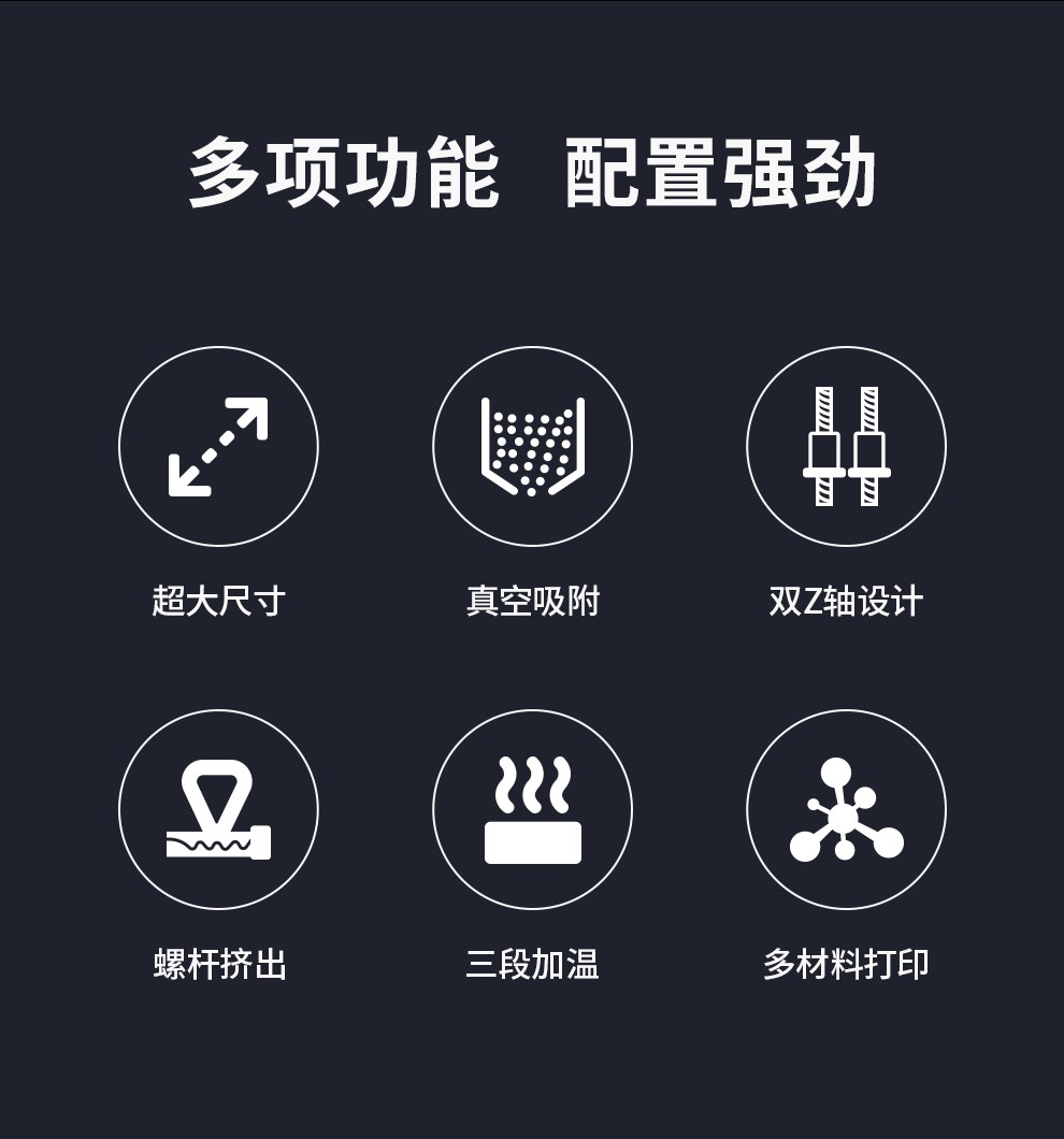 1.8米的超大打印尺寸,適配多種顆粒料耗材,具備更強大的塑造能力